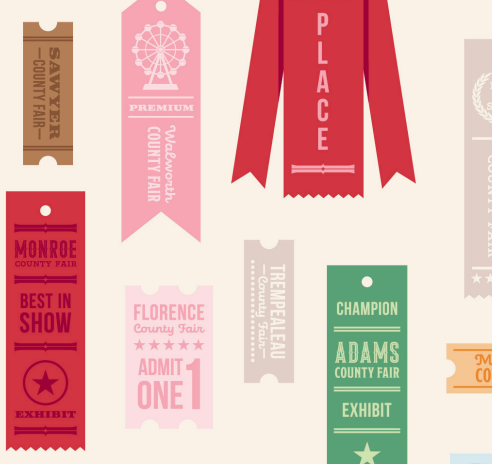 Wisconsin Best in Show from Riley Blake Designs. Ribbons Cream