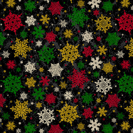 Poinsettia Greetings by Tina Higgins for QT Fabrics. Snowflake Tonal Black