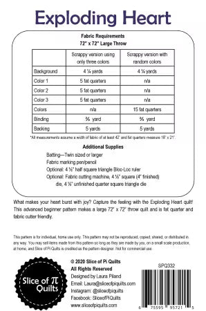 Introducing the Slice of Pi Quilts Exploding Heart quilt pattern, which will help you capture the feeling of joy bursting from your heart! This stunning pattern is perfect for advanced beginners, as it features standard machine sewing techniques and is fat quarter and fabric cutter friendly.
