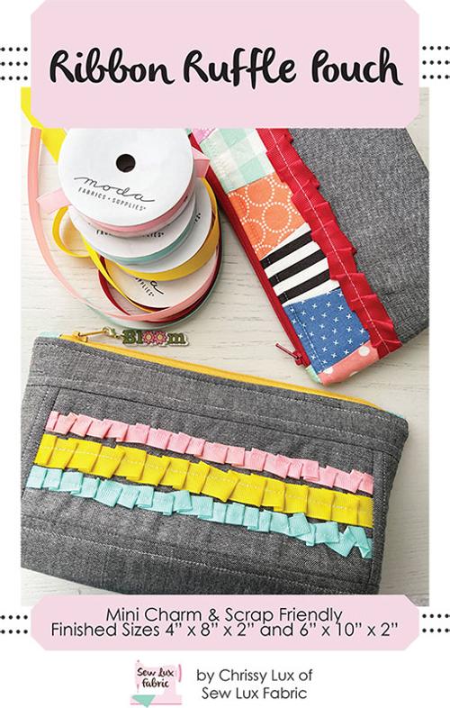Ribbon Ruffle Pouch pattern by Chrissy Lux of Sew Lux Fabric & Gifts. Project Size 6 inch x 10 inch