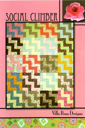 Discover the vibrant and dynamic 'Social Climber' quilt pattern, perfect for adding a touch of playful color to any room. This quilt features a stunning array of zigzag patterns in shades of green, pink, blue, yellow, and brown, creating a lively and engaging visual effect.
