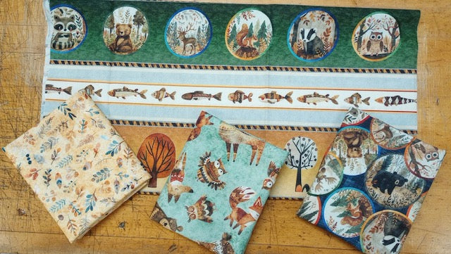 Bearsville by the Morris Creative Group for QT Fabrics. Fat Quarter Bundle of 4 fabrics which coordinate with the large panel and the block panels.