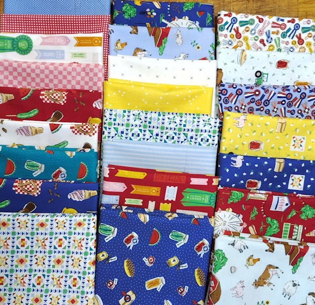 Wisconsin Best in Show Fat Quarter Bundle of 24 fabrics from Riley Blake Designs. There are 19 Shop Hop Fabrics and 6 coordinating prints in the bundle - the panel is not included.