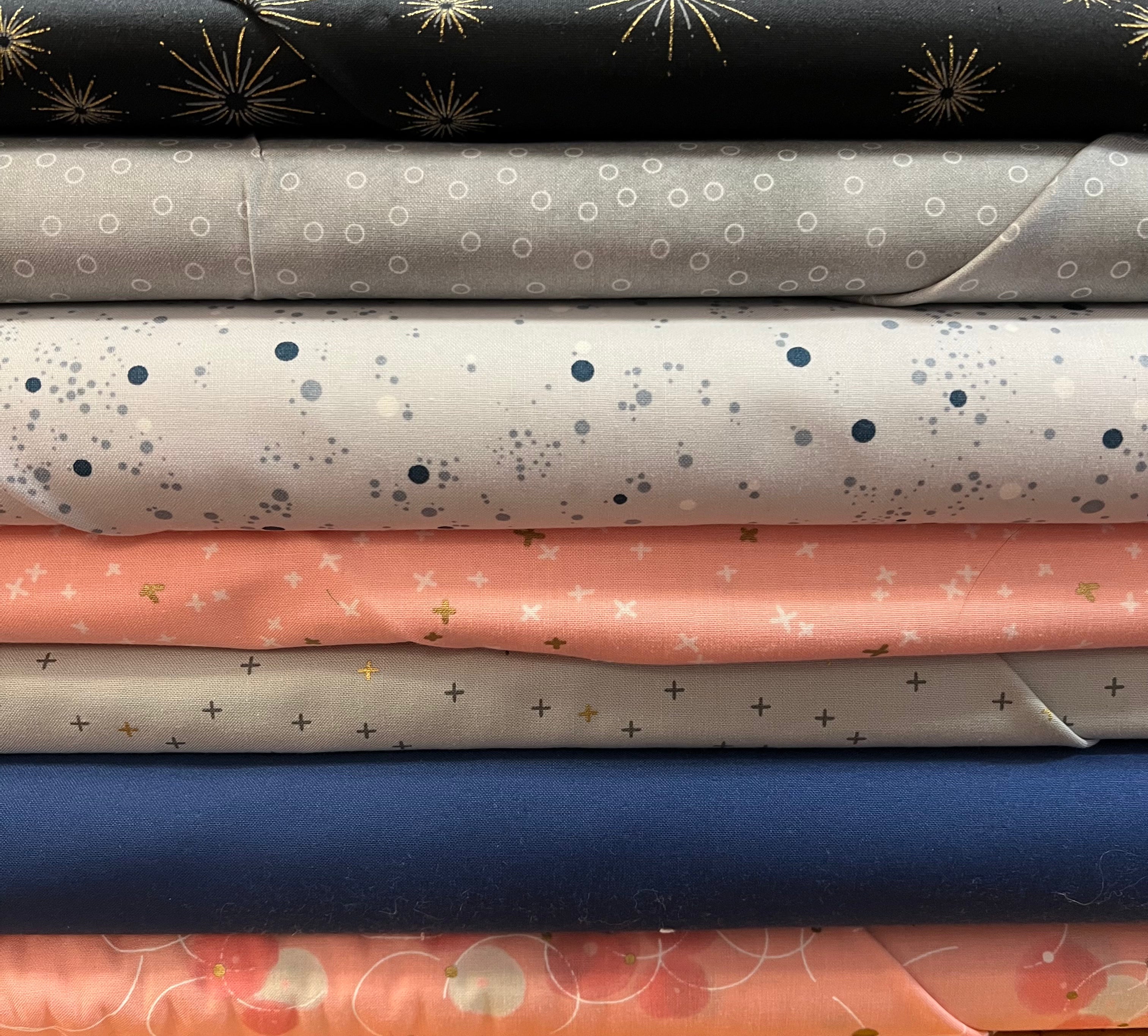 Our Luau Kit #11 has all the fabrics you need for either setting of the Luau Mystery - Luau Torches (65"×83") or Luau Feast (75"×75"). Binding is also included in the kit. Backing is not included. Cosmic Pink