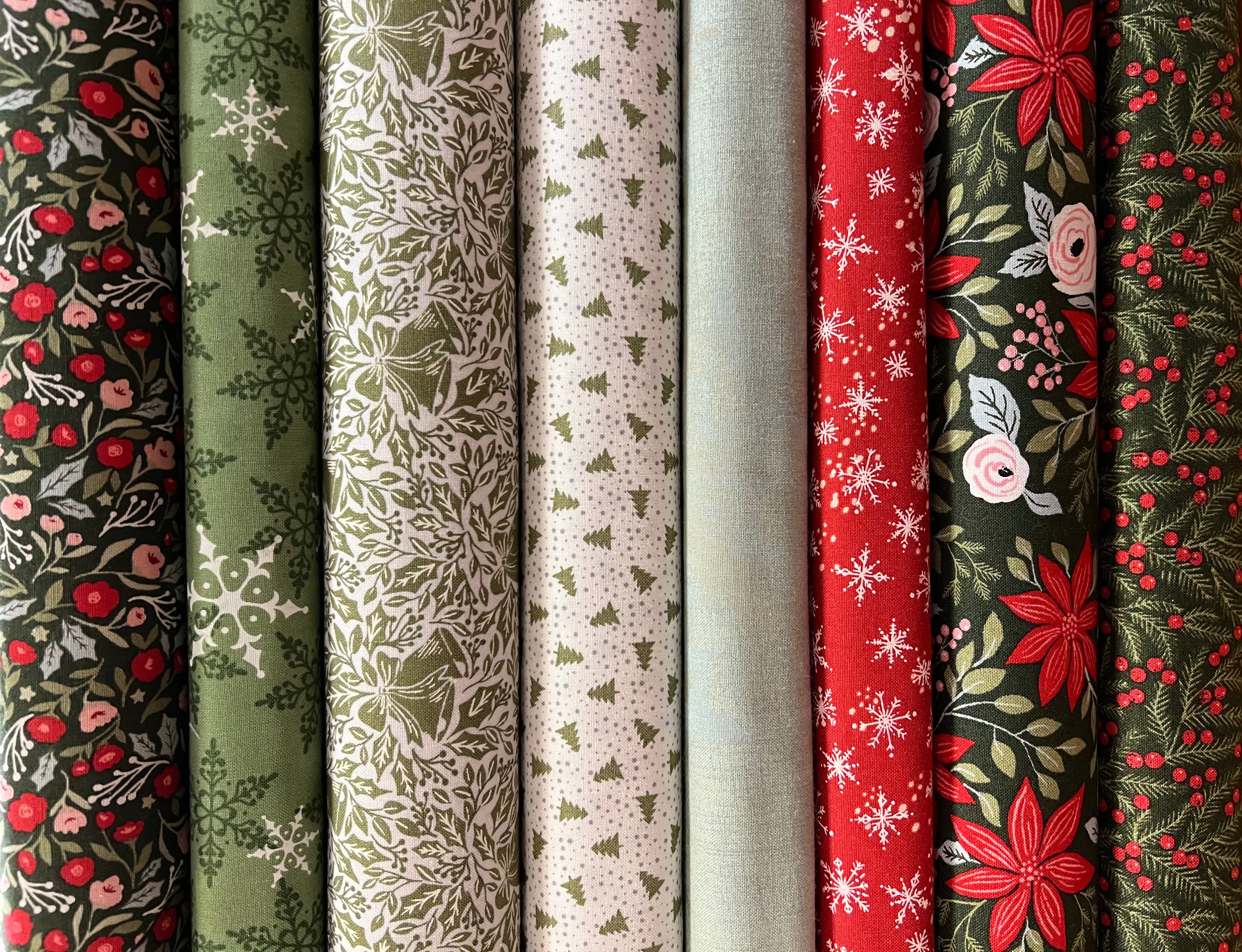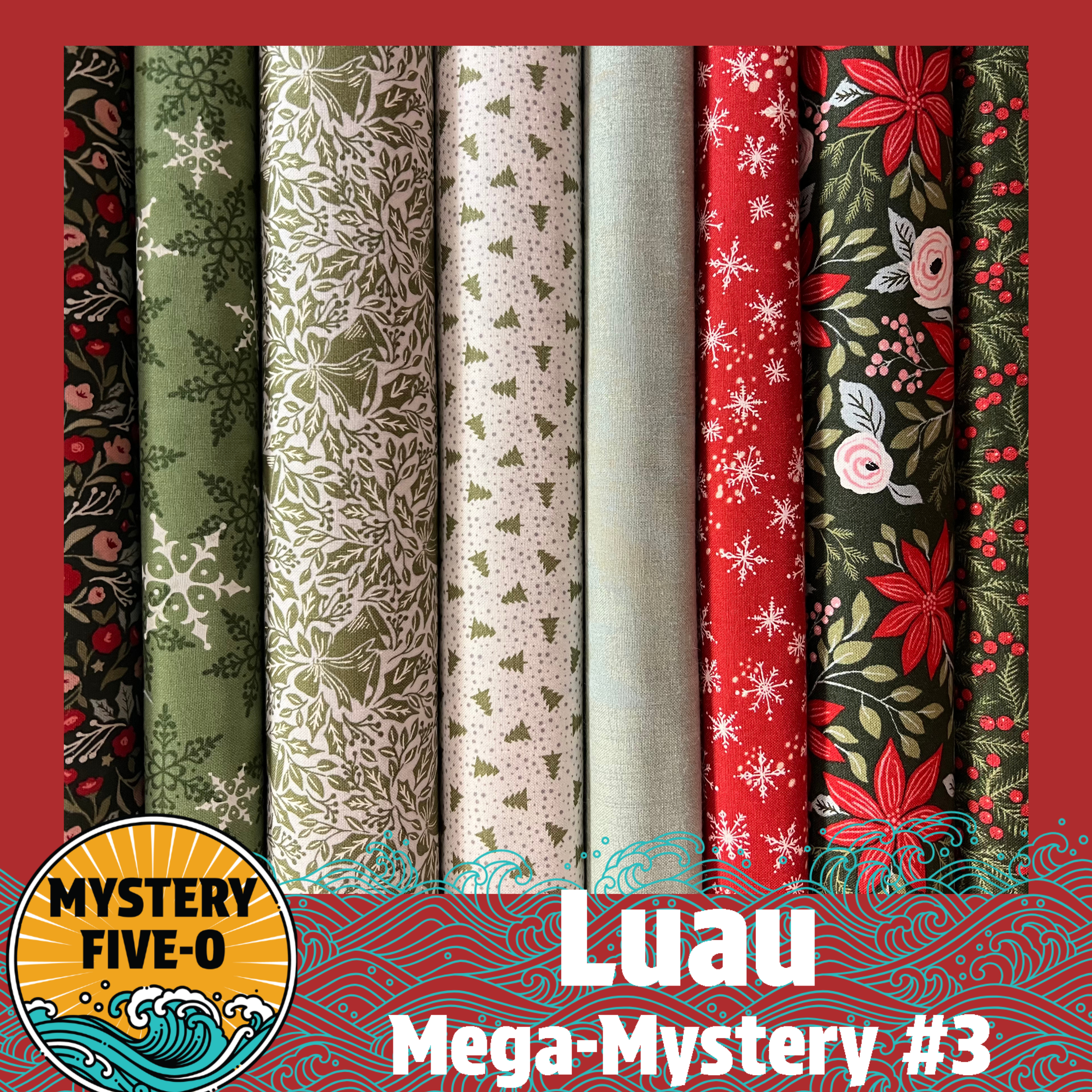 Our Luau Kit #8 has all the fabrics you need for either setting of the Luau Mystery - Luau Torches (65"×83") or Luau Feast (75"×75"). Binding is also included in the kit. Backing is not included. Berry & Pine