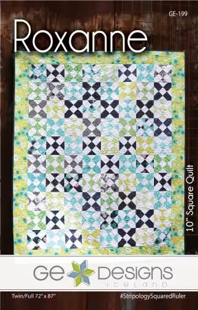 Pattern is made with 10" squares and the Stripology Squared ruler and has 5 sizes: Crib, Lap, Twin/Full, Queen, King. Layer Cake Friendly!