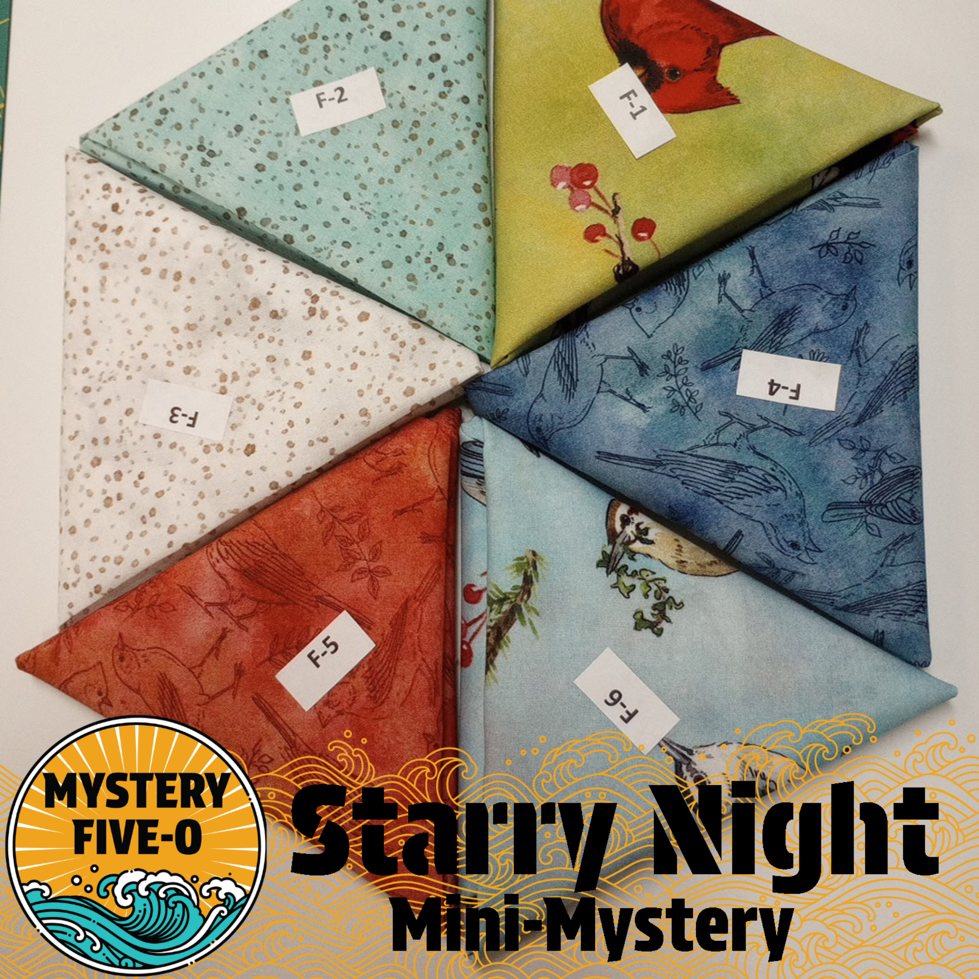 This bundle coordinates with the M50 Starlight Mini Mystery! This one is done in the fabric line Drawn to Birds and coordinating fabrics. Grab yours before the mystery begins on September 20, 2025. Please note that each fabric is labeled with a fabric number that will correspond in the mystery.