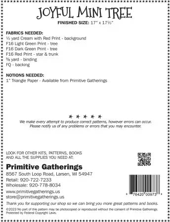 Joyful Mini Tree pattern by Lisa Bongean of Primitive Gatherings