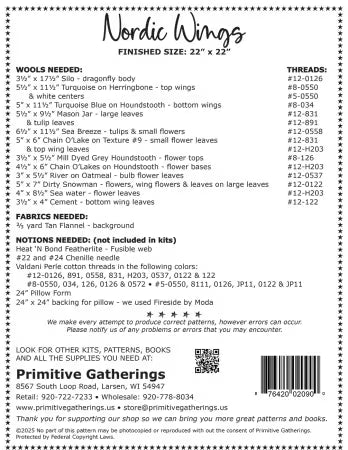 Nordic Wings pattern by Lisa Bongean of Primitive Gatherings. Finished Size: 22 inch x 22 inch