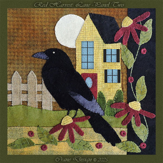 This pattern features the favorite neighborhood friend the CROW in a country setting. It has subtle touch of day and night and surrounded by whimsical flowers and berries. This pattern may be displayed as a single wall-hanging using both panels or as 2 individual pillows to accent your Crow decor. What a fun design to stitch and display.