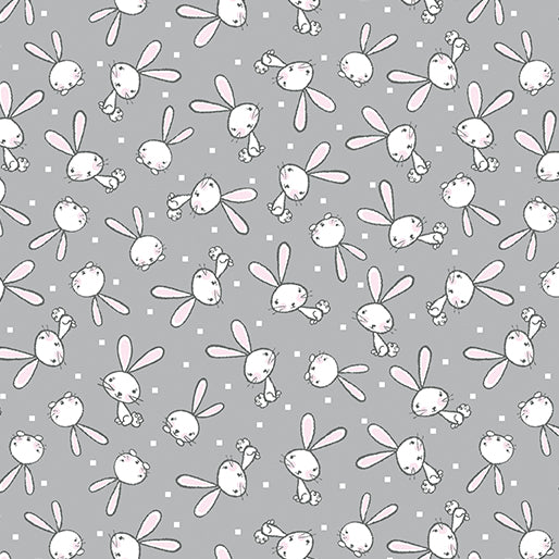 Doodle Baby Flannel Bunny Love Grey 13225F-13