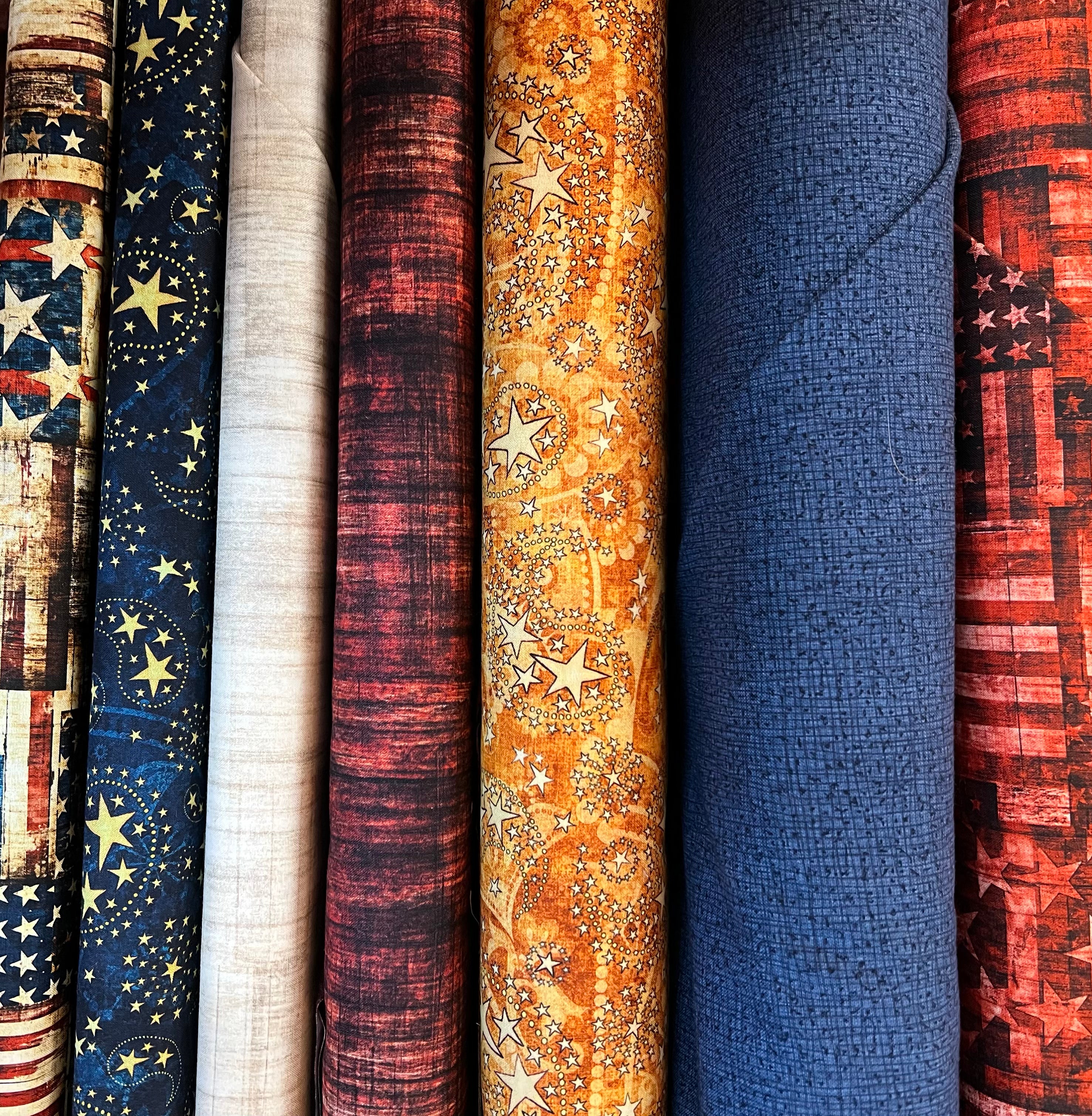Our Luau Kit #12 has all the fabrics you need for either setting of the Luau Mystery - Luau Torches (65"×83") or Luau Feast (75"×75"). Binding is also included in the kit. Backing is not included. Patriotic