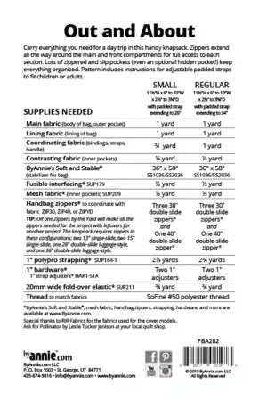 This compact and feature-rich backpack is sized to work well for adults as well as children. Just adjust the lengths of the shoulder straps (as directed in the pattern) to make it perfect for everyone, from 4-year-olds to 90-year-olds.