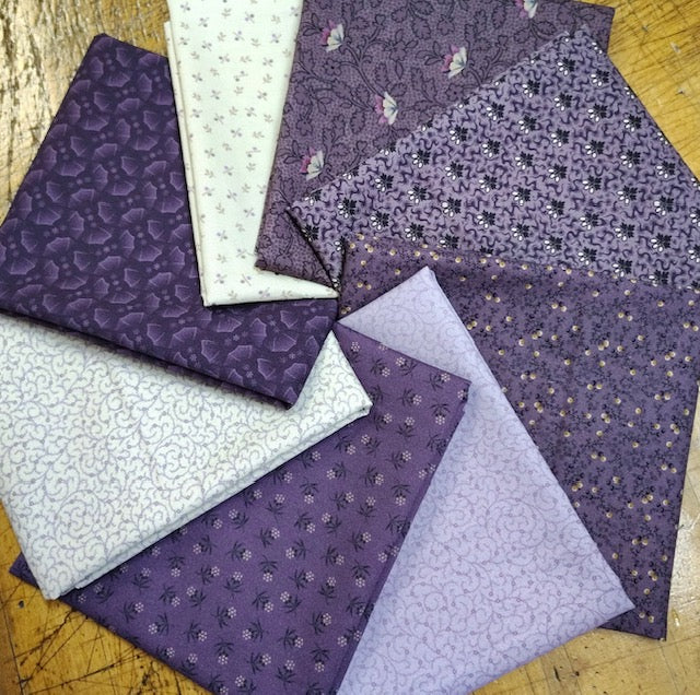 Yet another stunning reproduction fabric line from Pam Buda! This one celebrates all different shades of lilacs, plums, and creams done in her signature traditional motifs and prints. Pam truly answers the call for more purple Civil War fabric for all of our purple lovers!