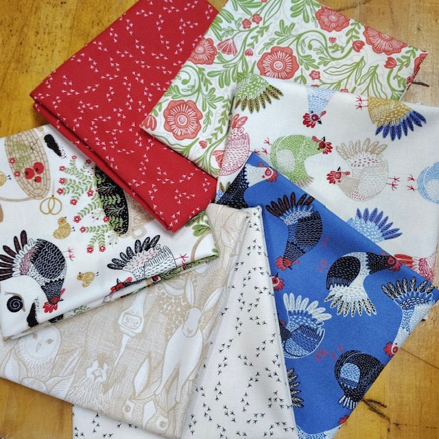 The Henhouse by Gingiber for Moda. Fat Quarter Bundle - 7 Fabrics