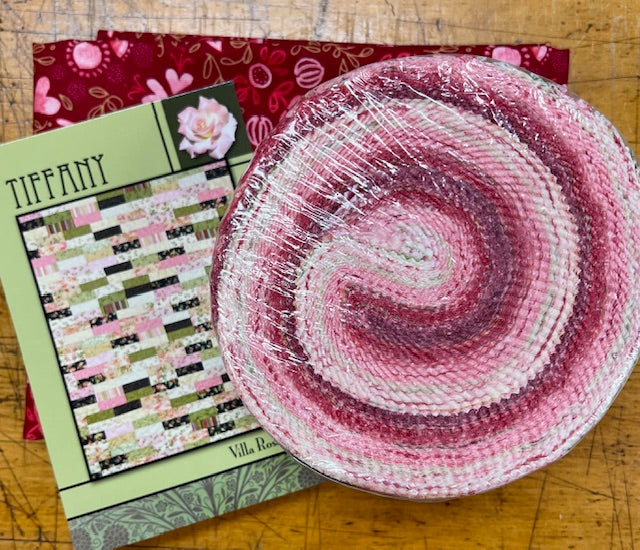 Our kit includes the pattern, Darling Peony Jelly Roll and binding. Backing fabric will need to be purchased separately.